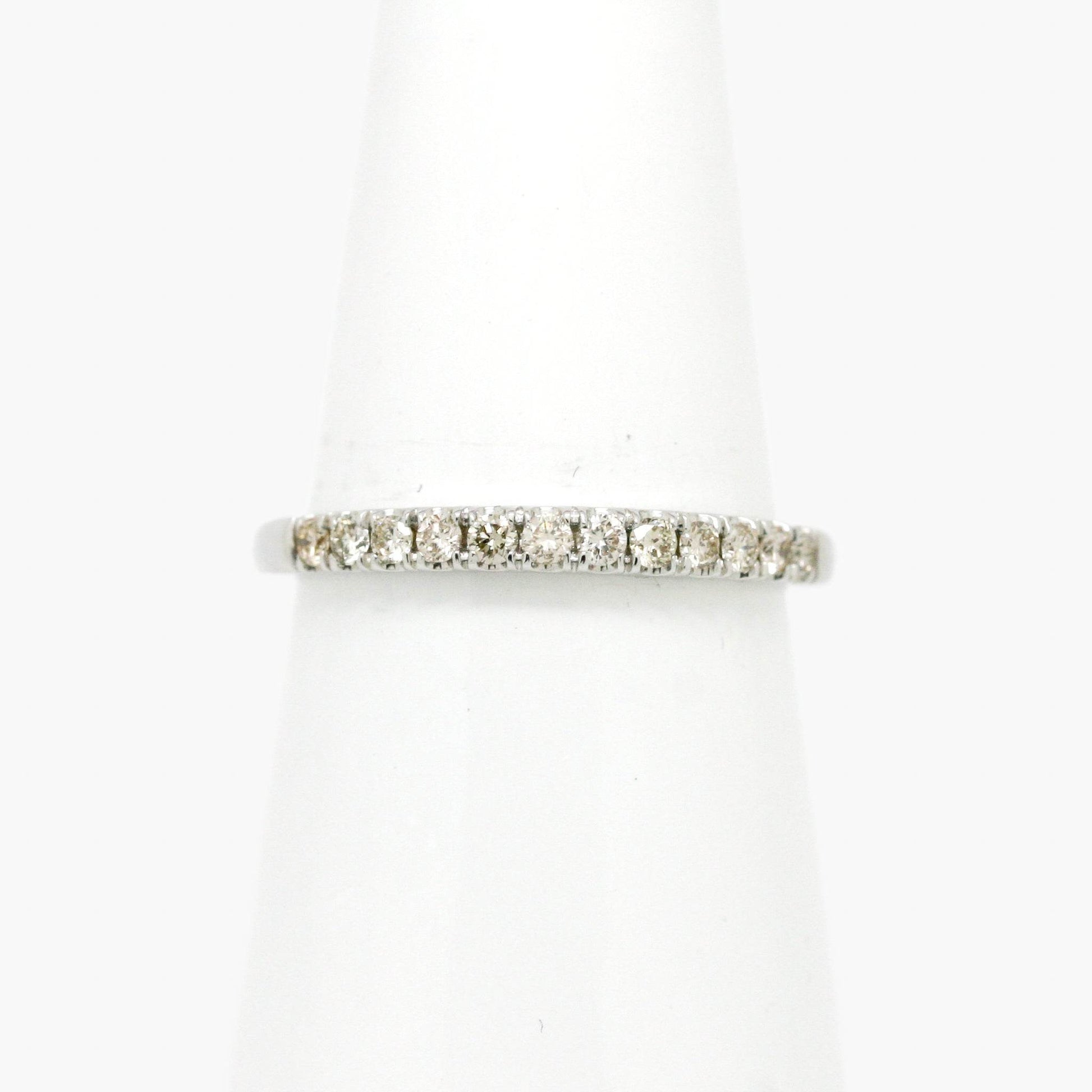 This 9 carat white gold half eternity ring features 0.25ct of diamond in a bar setting. The ring is available in a sizes N and L.