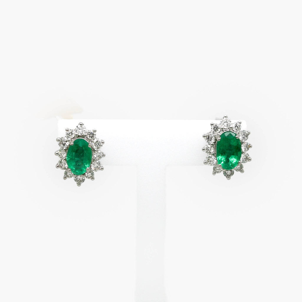 0.88ct Oval Emerald & Diamond Stud Earrings - Jordans Jewellers