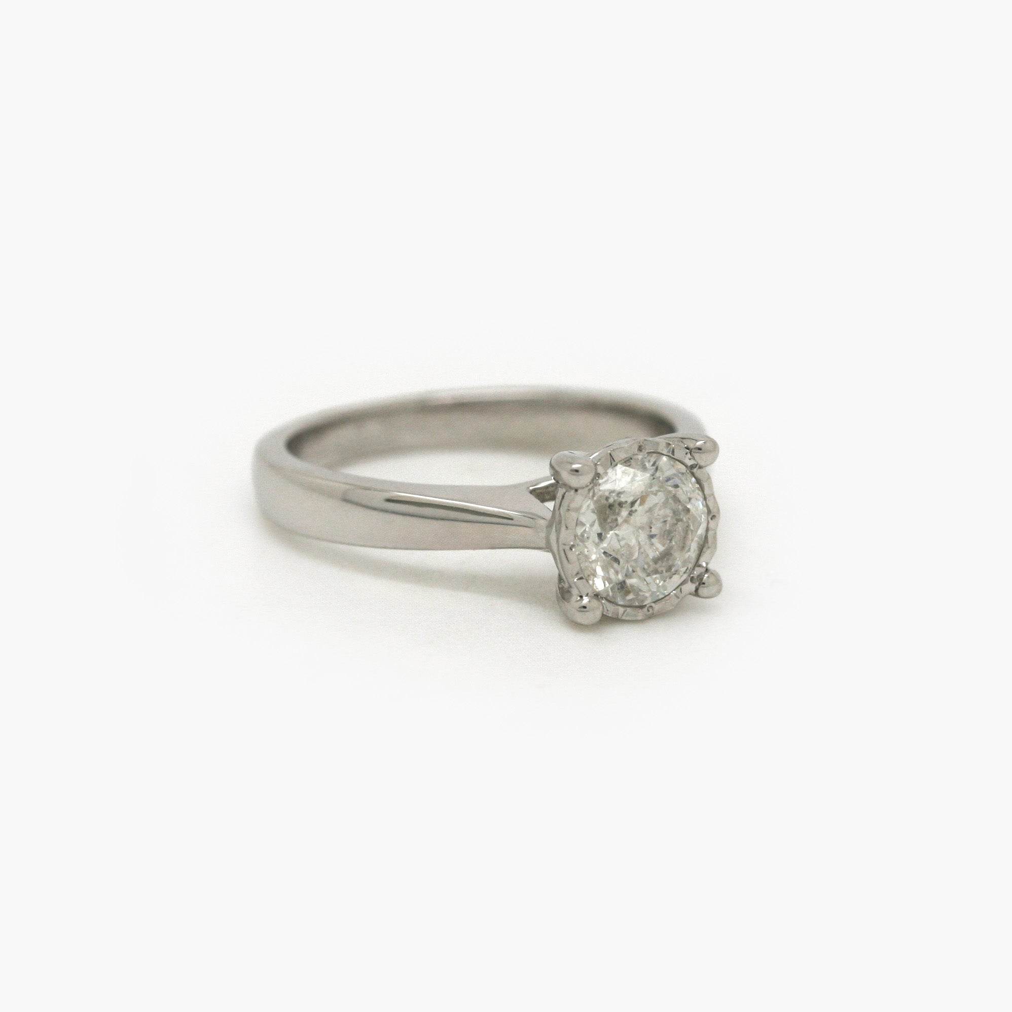 This stunning ring showcases a 1.25ct diamond, perfectly and elegantly held in a claw setting. The claw design enhances the diamond's natural brilliance and superior quality by maximizing visibility and light reflection.