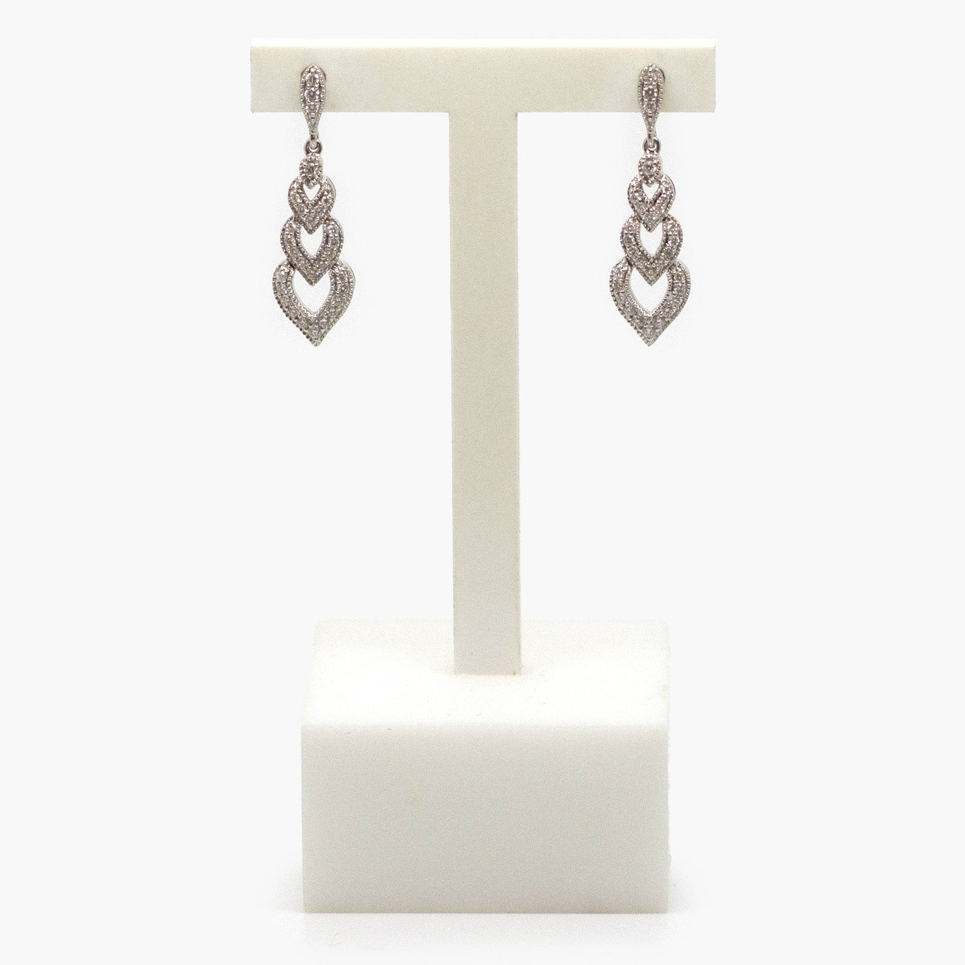 18 Carat White Gold & 0.45 Carat Diamond Triple Heart Drop Earrings