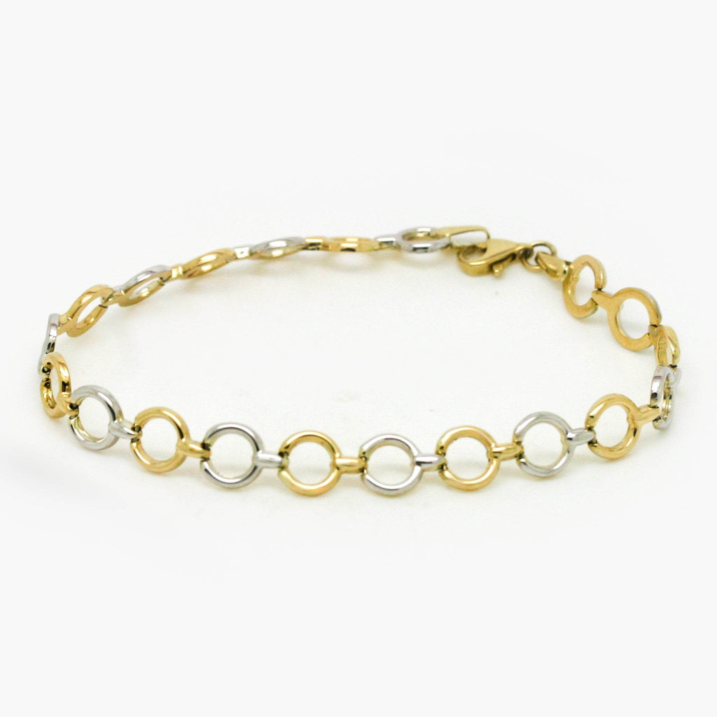 This circle link bracelet is made with 9 carat white and yellow gold. The bracelet is 7.5 inches long and is a beautiful piece of wristwear.