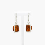 This beautiful pair of earrings feature curved edge square shaped amber stones in a beautiful honey colour, sat in 925 stamped silver with a lever back.