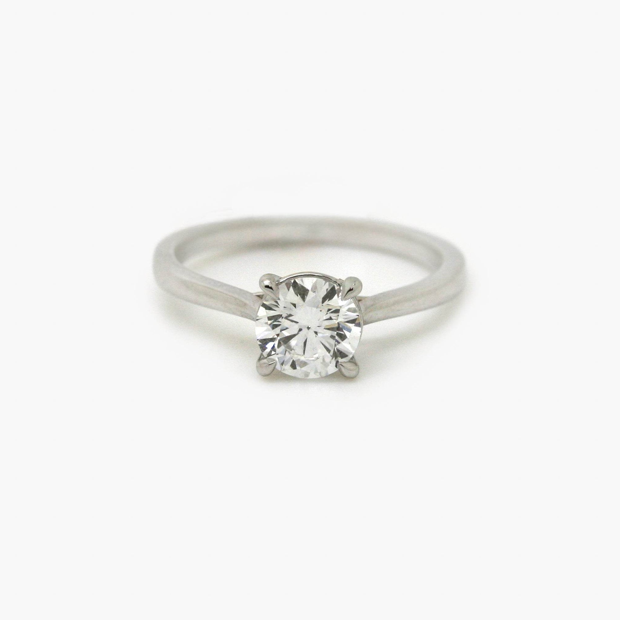 Timeless elegance in platinum, this 1.06ct round brilliant solitaire diamond ring offers a classic, refined look—perfect as an engagement or statement piece.