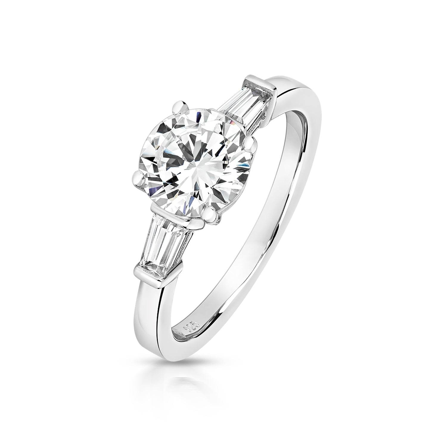 NEW Three Stone Round & Tapered Baguette Cut Ring - Jordans Jewellers