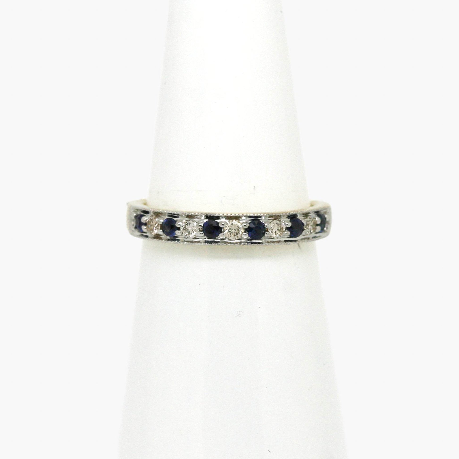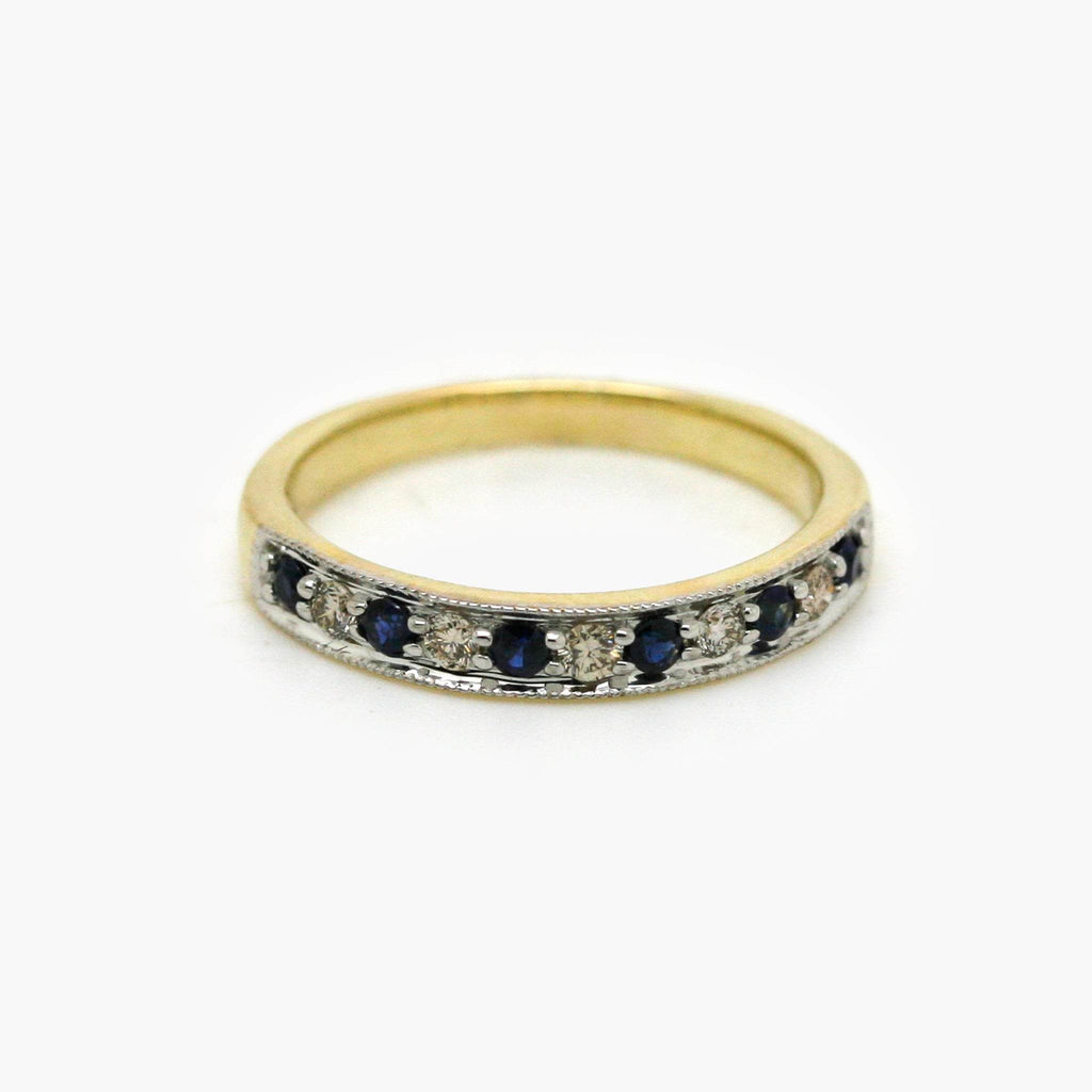 9ct Mixed Gold Sapphire & Diamond Claw Set Half Eternity Ring - Jordans Jewellers