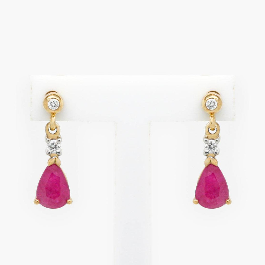 Elevate your style with our classically stunning NEW 9 Carat Yellow Gold Ruby & Diamond Drop Earrings, a dazzling addition to any jewellery collection!
