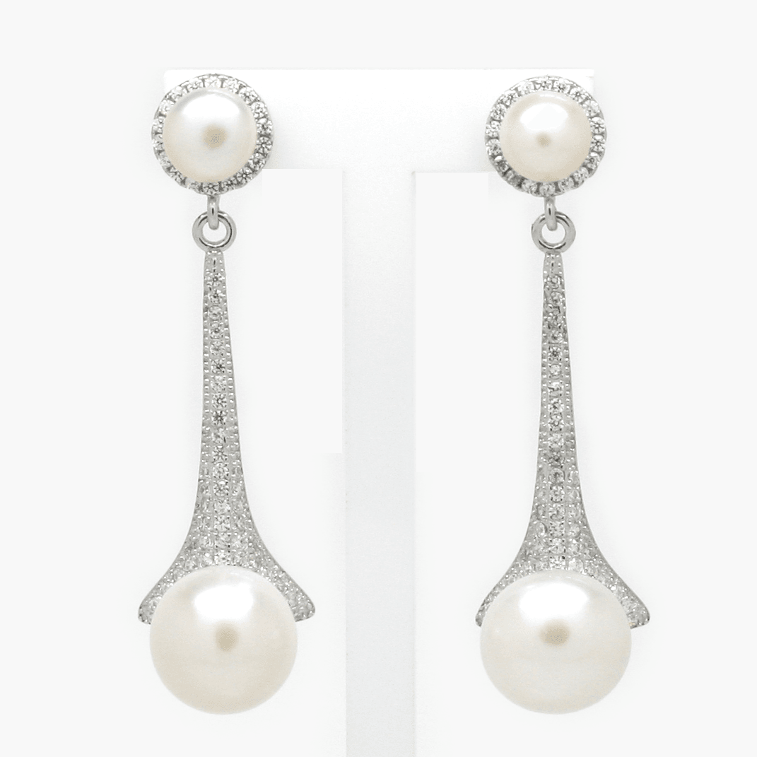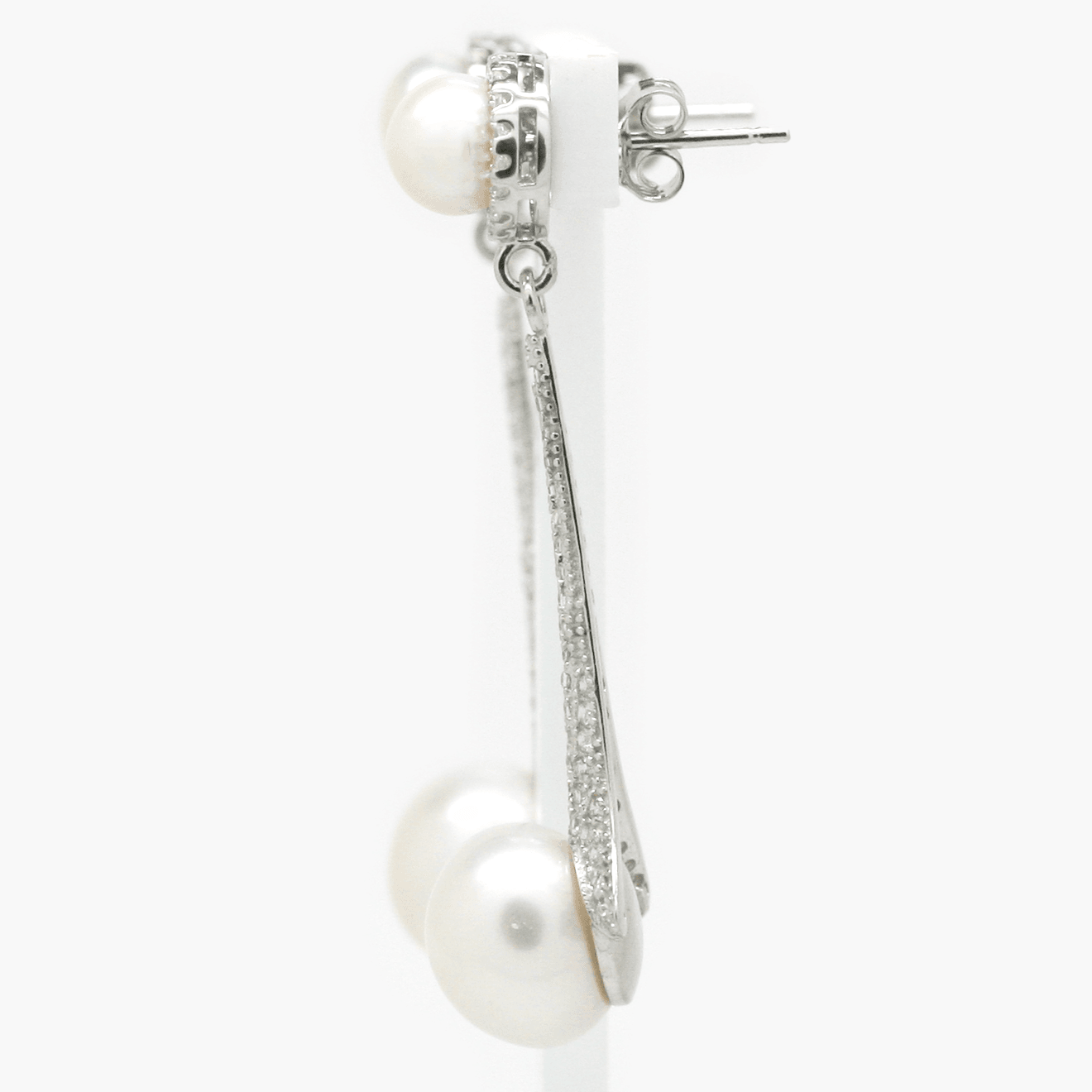 NEW Silver CZ Pearl Dangle Earrings - Jordans Jewellers
