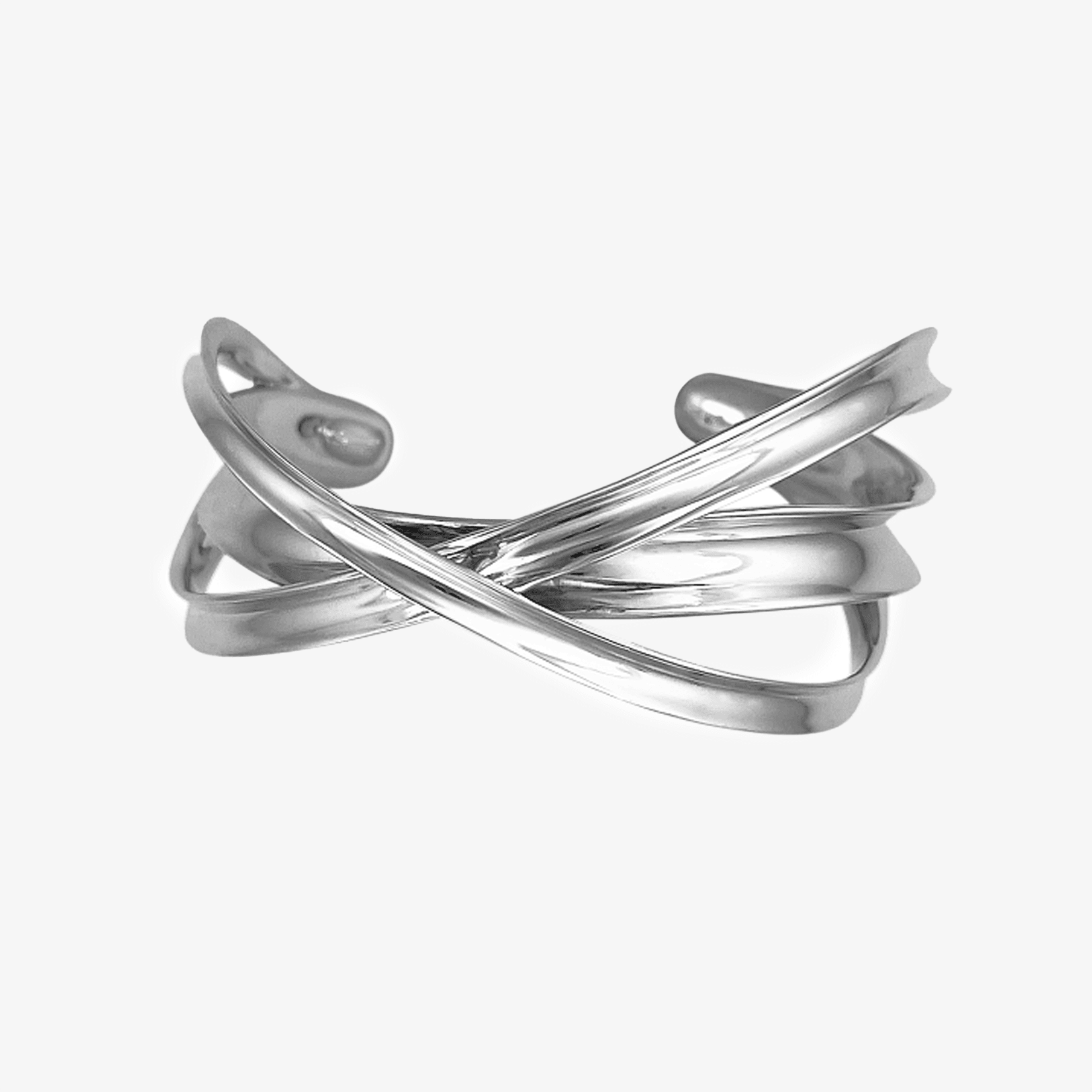 New silver cuff bangle is beautifully made and designed with multi strands of polished silver, crossed together creating an elegant, delicate bangle. Easy to put on and off, it looks great no matter what else you choose to wear.