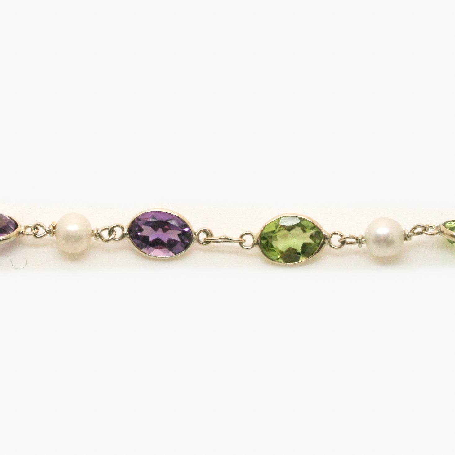 Peridot, Pearl & Amethyst Bracelet 9ct Yellow Gold