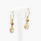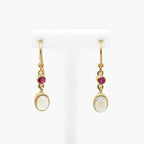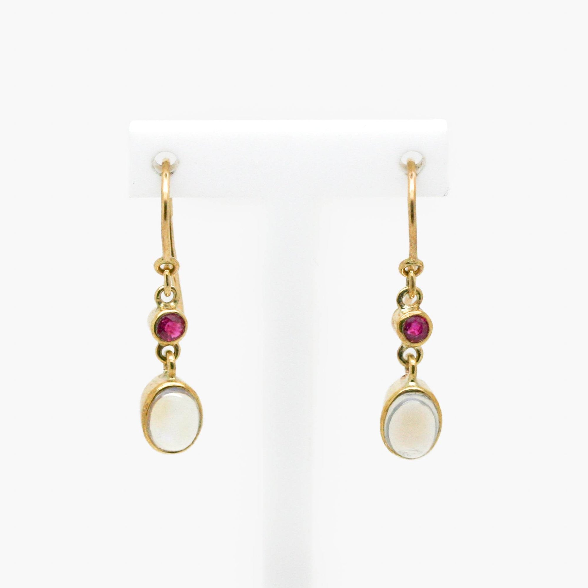 Ruby & Moonstone Drop Earrings in 9ct Yellow Gold