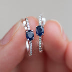 Sapphire & Diamond Oval Huggie Hoop Earrings