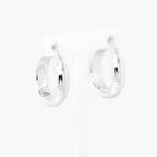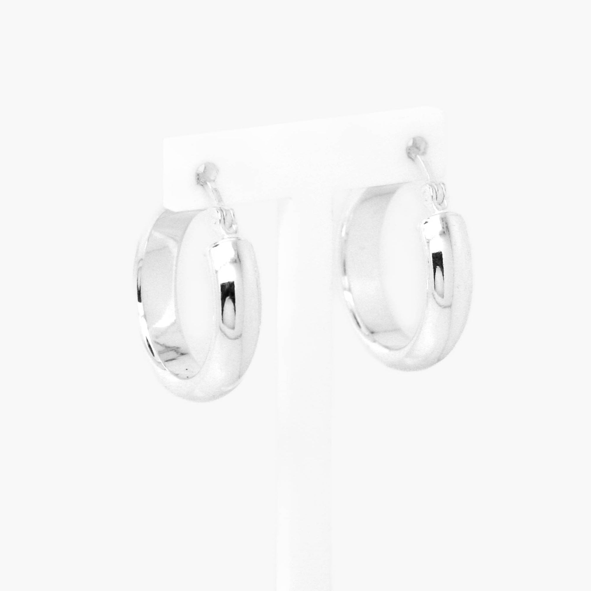 These polished hoop earrings feature a sleek, glossy finish and a mid-sized circular design. They are designed with post backs for a secure and easy fit.