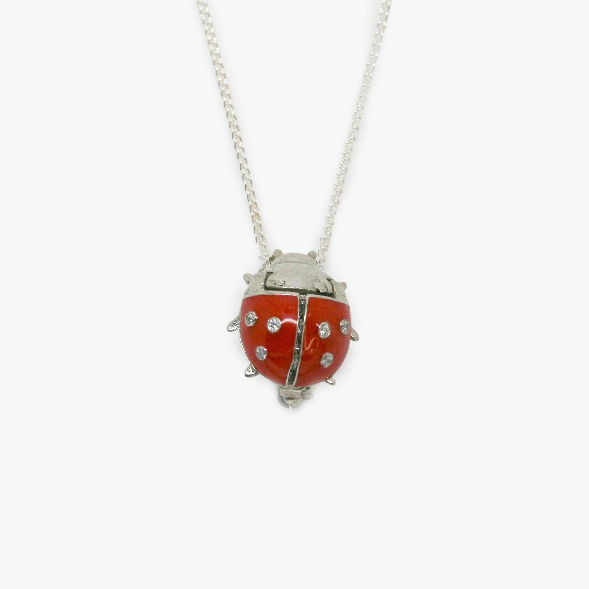Silver CZ Enamel Ladybird Brooch/Pendant Necklace