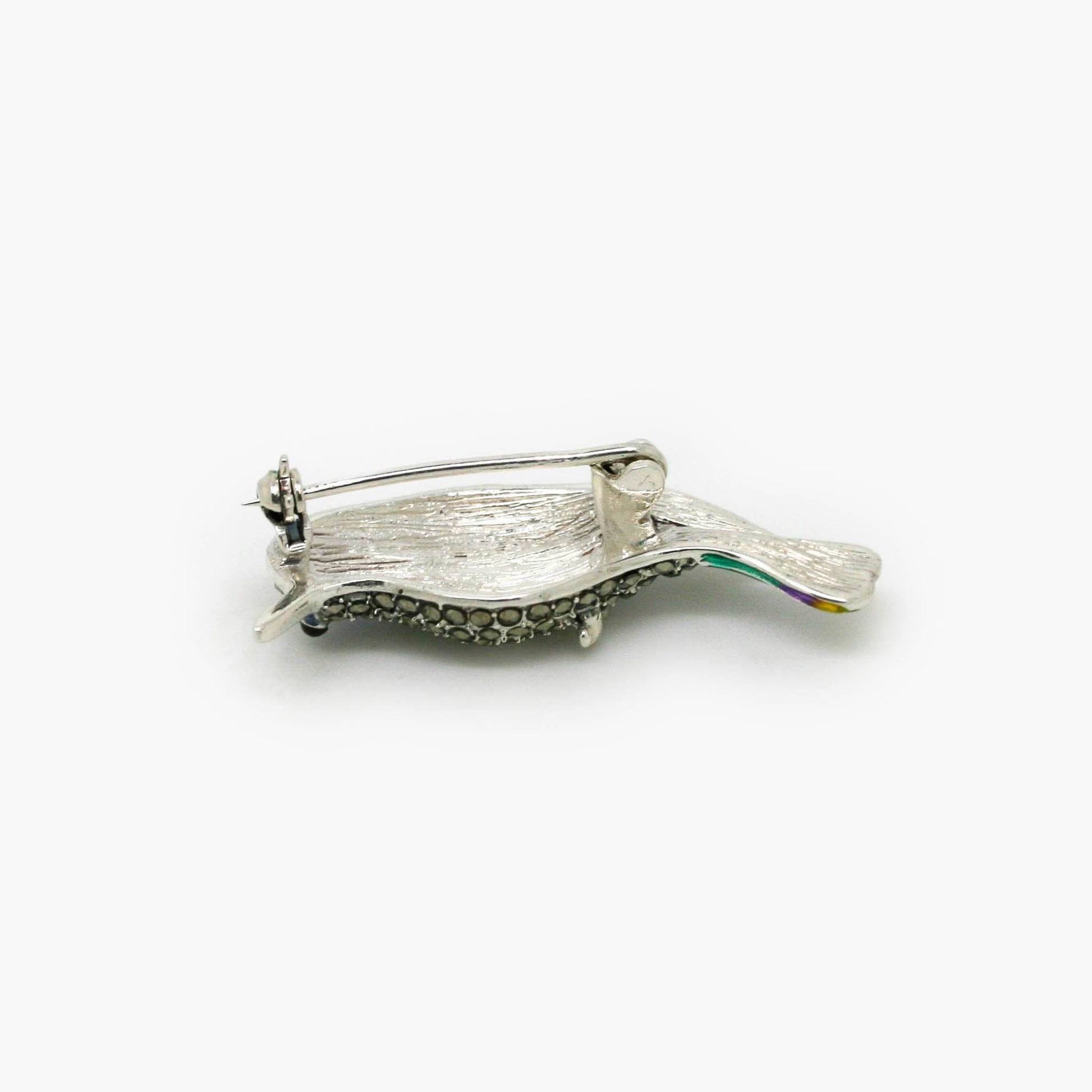 This detailed bird brooch features shimmering marcasite and rich enamel accents in vibrant tones. A beautifully crafted piece, perfect for nature lovers.