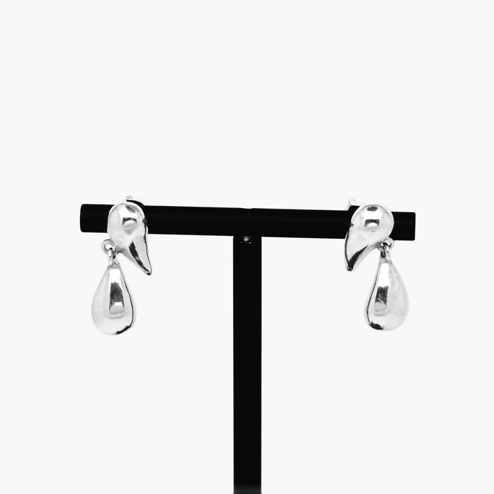 These silver drop earrings feature a unique shark tooth design. The earrings measure 2.3cm when hanging and have a secure butterfly back.