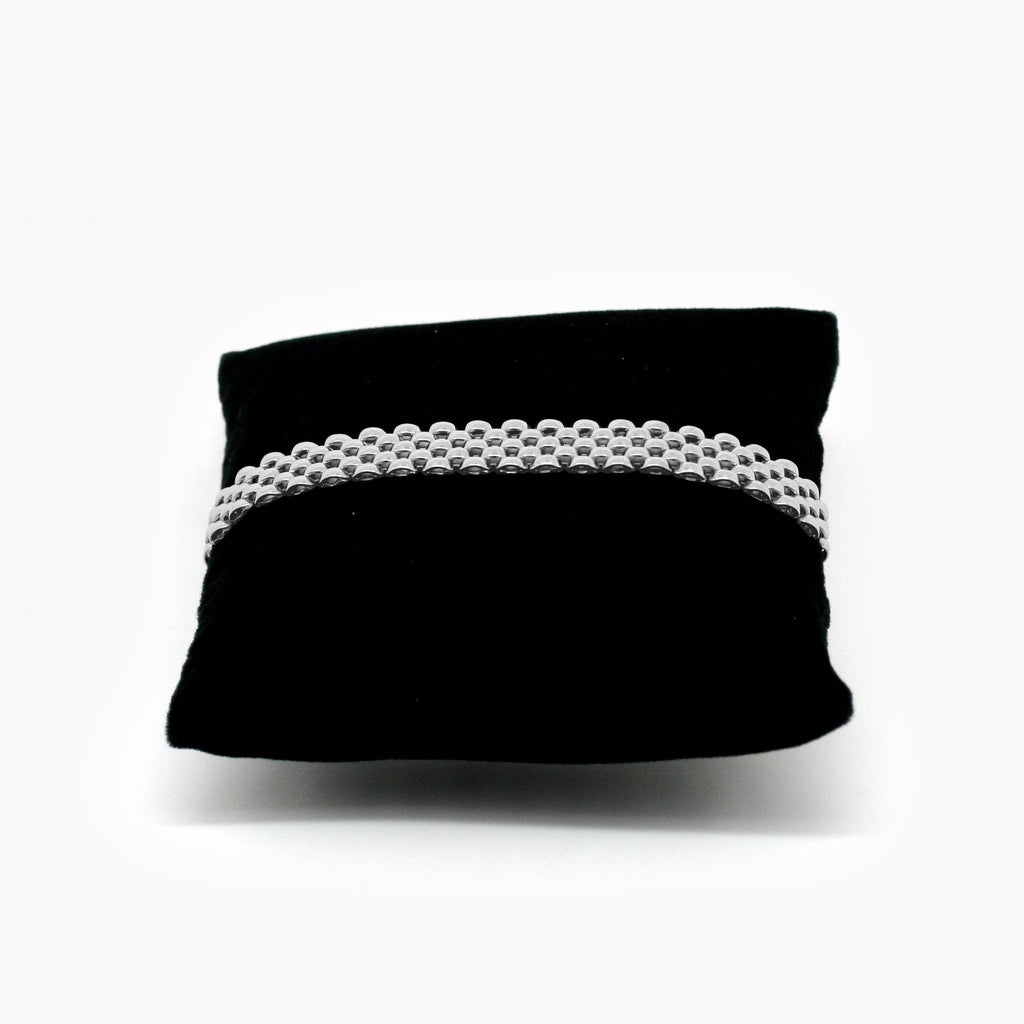 This silver watch link bracelet is expertly crafted for a stylish and sophisticated look. Made with high-quality materials, it offers a comfortable and secure fit. The sleek design complements any outfit, making it a versatile addition to any wardrobe.