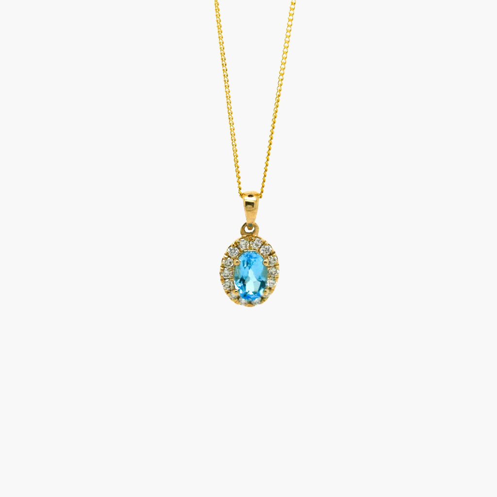Swiss Blue Topaz & Diamond Pendant Necklace - 9ct Yellow Gold